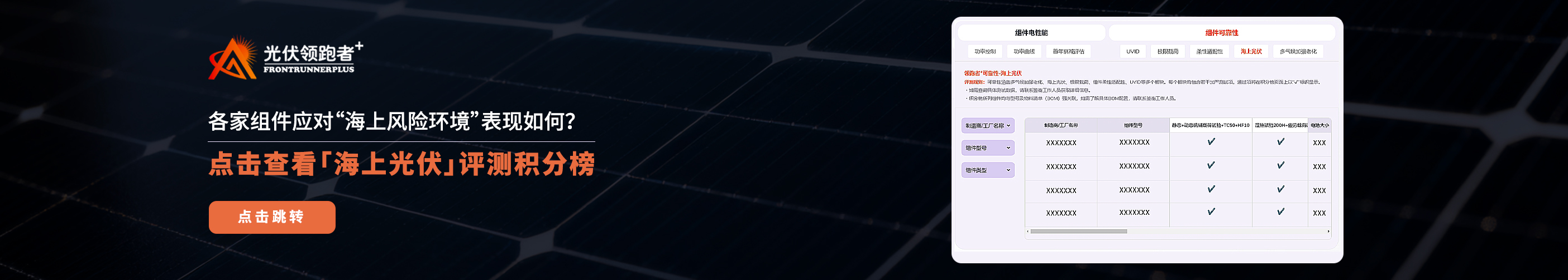 海上光伏选用复合边框材料,可以有效降低海洋高温高湿环境对金属边框的强腐蚀现象,同时具有避免接地、降低爆板率、高性价比等优点。但是复合边框也存在机械强度和受UV照射的影响的问题。 所以需要针对性的可靠性检测,其检测主要分为: