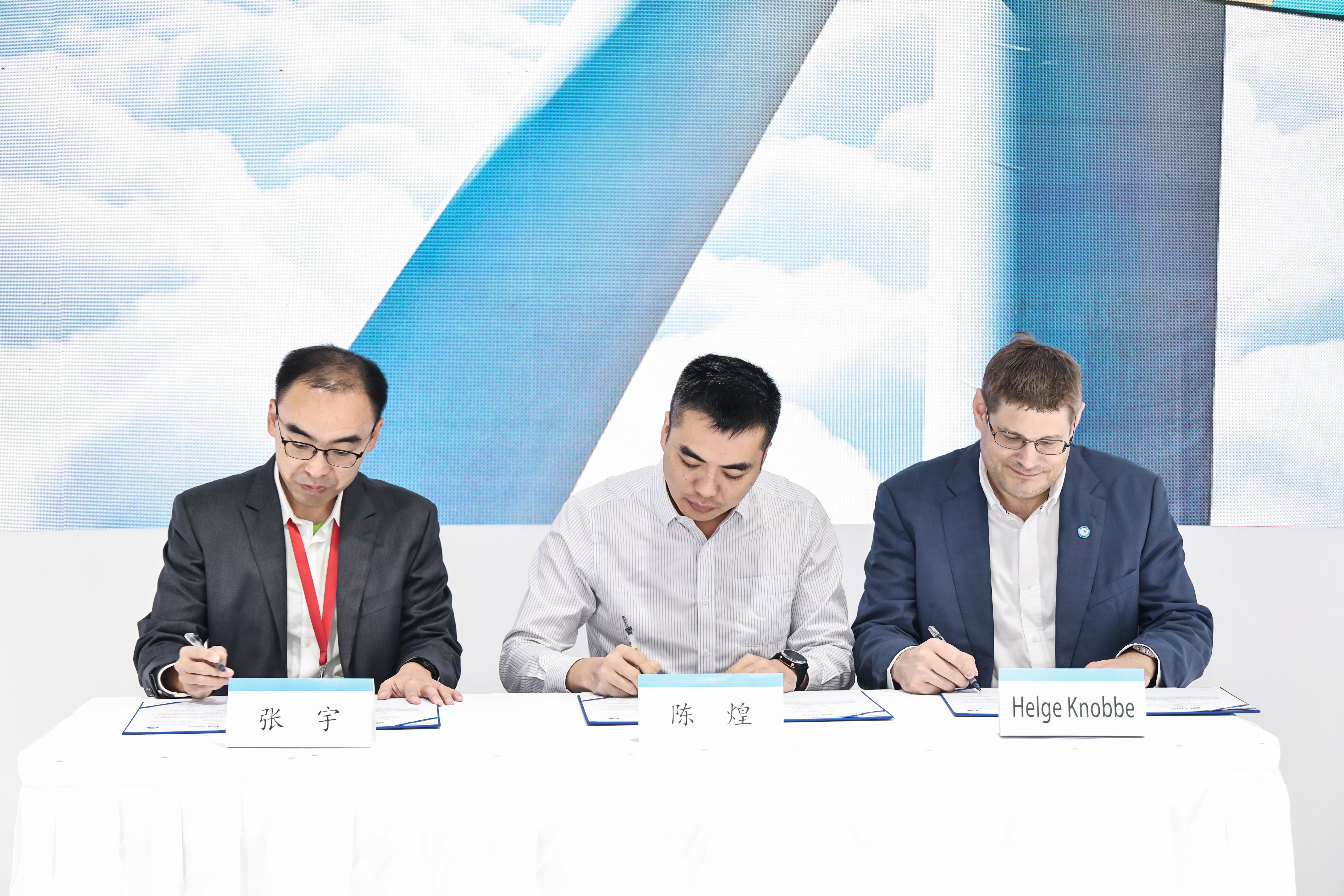 10 月 20 日,2025 北京国际风能大会现场,北京鉴衡认证中心、TÜV 南德与中车时代新材共同签署风电长柔叶片高标准材料认证合作协议,标志着行业在原材料质量管控与认证体系建设上迈出关键一步。北京鉴衡认证中心副总裁张宇、TÜV 南德何诺贝博士(Dr.Helge Knobbe)及中车时代新材风电产品事业部开发中心副主任陈煌共同出席签约仪式。